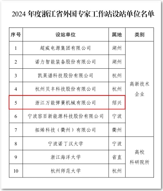 2024年,浙江萬(wàn)能彈簧機(jī)械有限公司榮幸地成為紹興市唯一入選的企業(yè),再次為紹興市爭(zhēng)得榮譽(yù)。這個(gè)成就不僅是對(duì)公司技術(shù)創(chuàng)新和國(guó)際化發(fā)展戰(zhàn)略的肯定,也標(biāo)志著公司在全球競(jìng)爭(zhēng)力方面邁出了新的步伐。